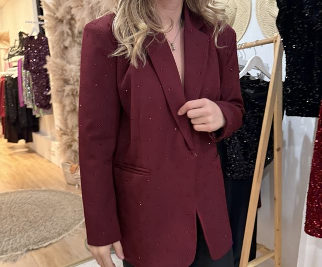 Mooie oversized glitterblazer met strass in de kleur bordeaux