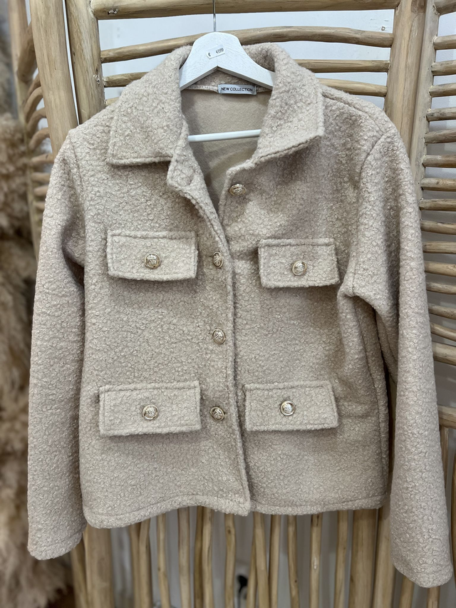Beige Teddy Jasje Met Gouden knopen, deze heerlijke stretch teddy jas maakt jouw outfit compleet